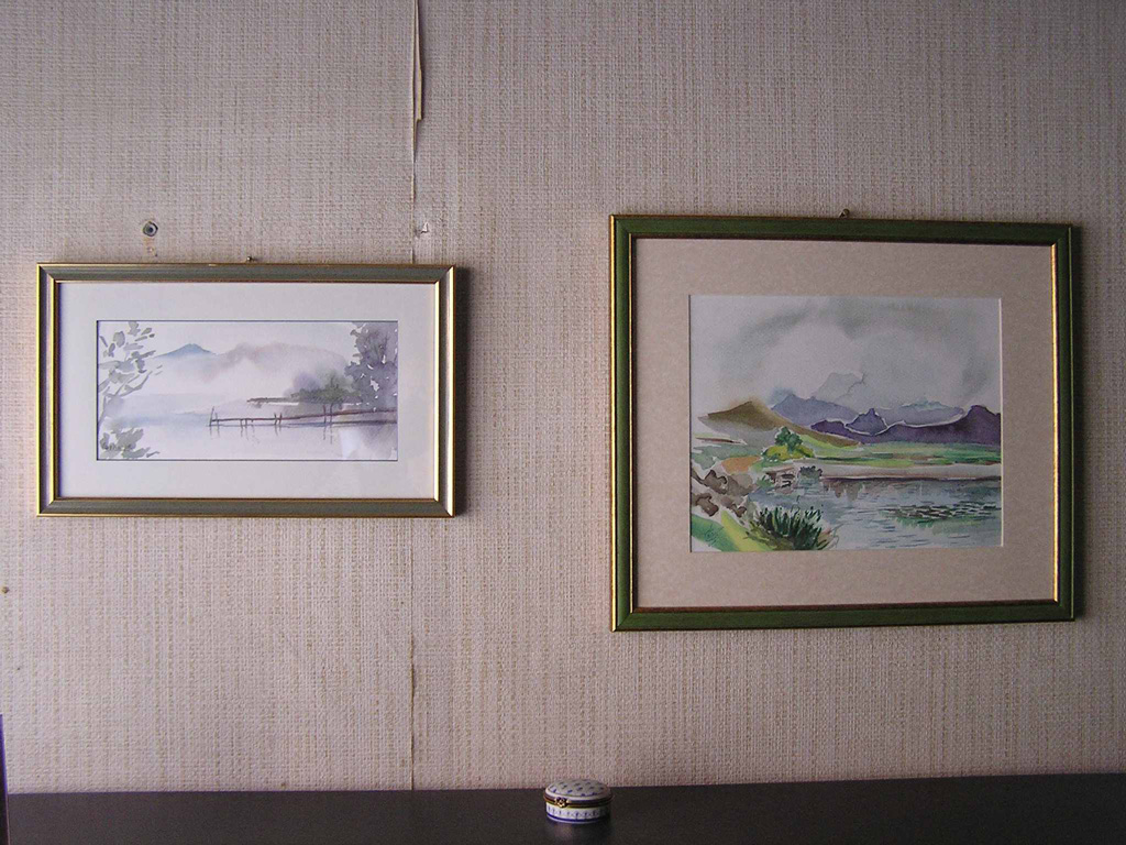 Gli acquerelli di cui Farhang mi ha fatto dono, come appaiono all' interno della sala della mia biblioteca |