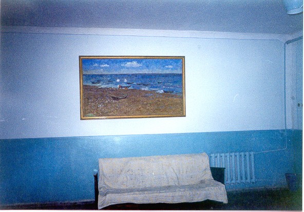 Nella sala d'ingresso vasta e dimessa, tinteggiata di blu, due quadri avevano suscitato la mia attenzione, che campeggiavano sopra i tavolo dei pasti ed il divano sfatto degli ospiti: essi mostravano come le acque dell' Aral fluttuavano un tempo contro le rive sabbiose dell' istmo di Moynaq, raffigurandovi le barche che vi erano tratte ad un approdo.