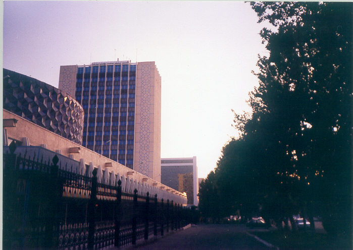 E così è stato: non già al cospetto del paventato assalto di tassisti assatanati di dollari, che ho eluso essendo arrivato in Tashkent quando il sole doveva ancora volgere al tramonto, e gli autobus per la città era ancora in partenza, ma quando mi sono avviato alla loro stazione di sosta, presso l'aeroporto, con quanto recavo di scritto, su di un biglietto, delle informazioni che mi aveva trasmesso la cordiale signora ch'era l'addetta dell' Ufficio Informazioni, affinché il conducente dell' autobus si arrestasse nei pressi dell' Hotel Rossiya dove intendevo alloggiare.
