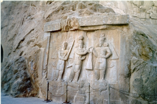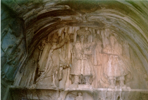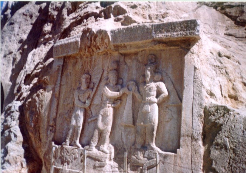 | Taq-è-Bustan investitura del re Firuz, da parte delle divinita di Ahura Madza e di Anahit |