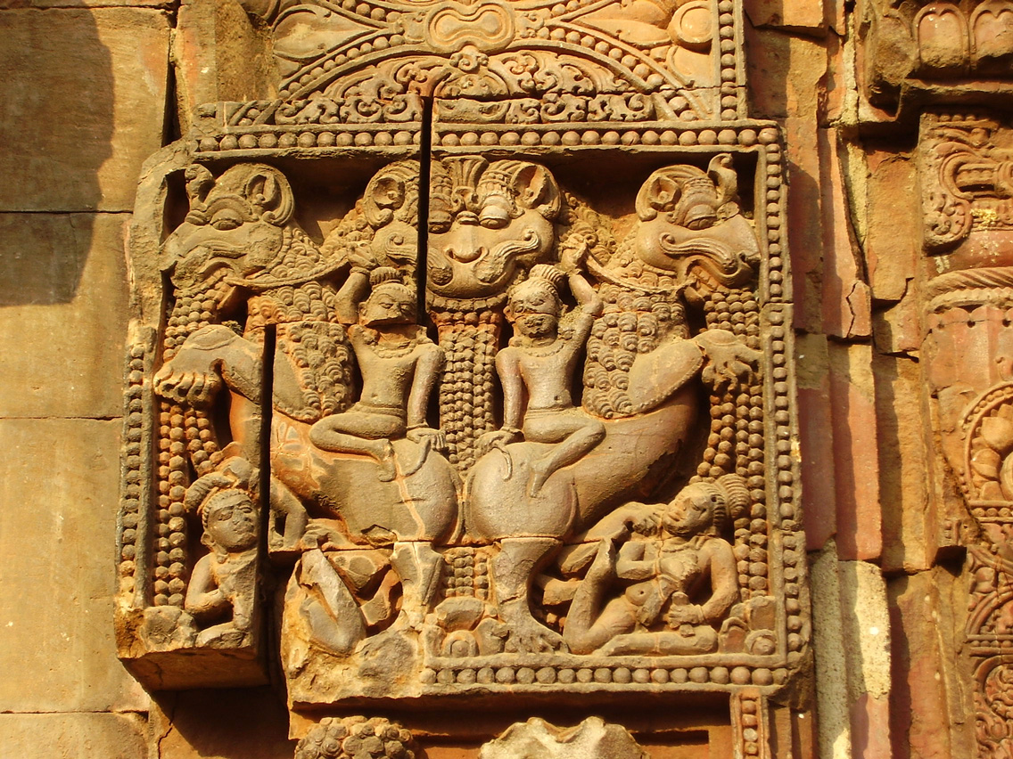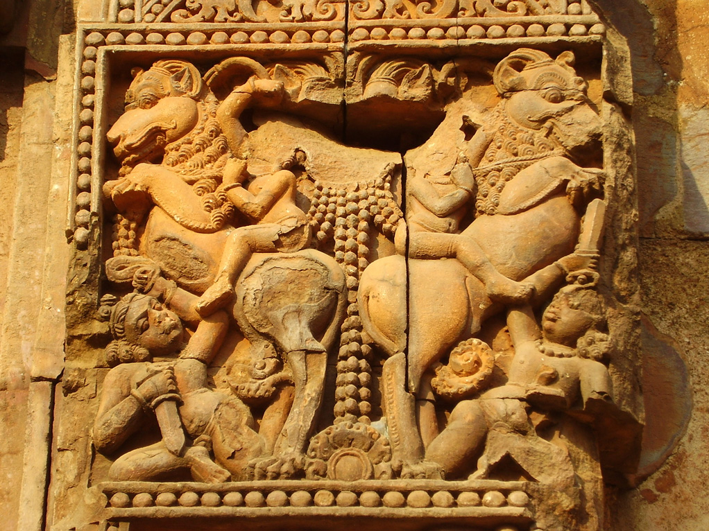lati, tra due coppie di cavalieri attergati su dei shardula, i