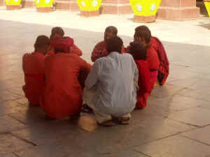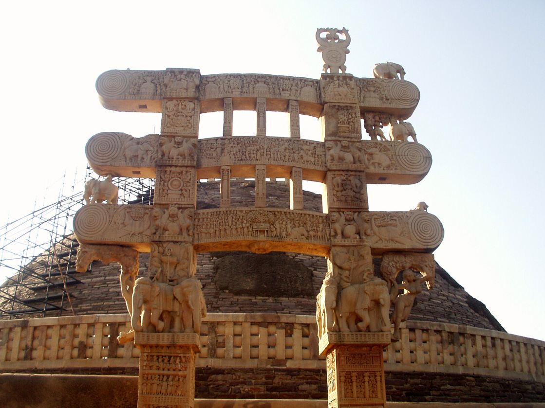 Sanchi sull' autobus scassato A Sanchi ( alla Gallery di Sanchi) bbiamo trovato chiusa la banca e l' ufficio postale nella cui disponibilità confidava il fiducioso Kailhash, perchè con la carta di credito vi potessi prelevare le rupie che mi occorrevano, - all' aeroporto di Delhi avevo scambiato un importo troppo esiguo di euro, ed in valuta indiana non avevo contante a sufficienza per pagare i pasti e l'hotel, l'indomani era festa, il primo dell' anno, e l'hotel non accettava il pagamento in moneta straniera... La splendida giornata di sole ci accaldava a tal punto, nella breve salita della collina su cui sorgono gli stupa, che prima di entrare ho chiesto a Kallu di sostare nella locanda accanto all' ingresso. per riaverci dallo sforzo. Come ci siamo seduti, è sopraggiunta ai tavoli accanto una comitiva di indiani anziani di cui abbiamo calamitato l'interesse.Provenivano da Calcutta, secondo quanto mi ha detto una signora che era la più intraprendente del gruppo. Quando Le ho chiesto di che fede fossero, se induisti o islamici, o dei buddisti sulle tracce delle antiche reliquie in India della loro religione, la sua risposta ha istantaneamente tranciato i velami spiritualistici della mia idea dell'iindia ch'era sottesa alla domanda riconducendomi alla realtà dell 'altra India, viva e reale quanto quella di guru e sadu: " No, we are communist" " We believe in the equality of right between men and women" O non era forse anche quella, nel su zelo militante una dichiarazione di fede, ed in India non è forse destinato anche il comunismo ad essere ancora vissuto come una religione, tra le altre, che determina l' l'identità e il fondamento vero dell' individuo. Il signore che cercava di intraprendere un dialogo con me, mi chiedeva se sapessi o avessi ancora memoria di Palmiro Togliatti, lui e la signora volevano sapere se ci fosse ancora un forte Partito comunista in Italia, ma non si rammaricavano né si stupivano visibilmente quando dicevo loro che l'idea del comunismo sopravviveva solo in piccole formazioni , che il grande partito comunista sui era trasformato in una forza socialdemocratica, della quale era in corso un' ulteriore evoluzione in un senso più genericamente democratico. Ed eccola, poco oltre, lasciata la comitiva di Calcutta, la grande stupa buddista, edificata nel primo secolo avanti Cristo dagli Shunga , involucrando quale suo cuore interno un edificio risalente, due secoli prima, al grande Ashoka o a suo figlio Mahendra, quando il sito di Sanchi si formò grazie alle donazioni dei mercanti della vicina Vidisha, di cui era originaria la moglie di Ashoka. All' altezza del magnifico portale del Torana settentrionale, dovevo entrare in competizione con una guida che aveva al seguito una comitiva di indiani, per mettere a frutto le conoscenze acquisite comunicandole a Kailash, insieme con l'ammirazione estasiata che suscitava la bellezza delle sculture che lo gremivano e istoriavano. Anche il giorno prima , in treno, ero tornato , alle pagine della guida dell' India del Nord che parlavano di Sanchi, sugli studi e gli appunti che avevo preso in Italia, attardandomi allora fino all' ultimo, in casa di mia madre, sui files e le immagini di un magnifico sito web che illustravano le simbologie e temi buddistici dei vari torana, prima di partire per Roma per il volo per Mosca, E sull' autobus avevo anticipato a Kailash i significati dei principali simboli che ora vedevamo scolpiti davanti, della spirale, la "gumav", che concludeva le trabeazioni orizzontali, " for the buddhism all comes from a point, and returns and finishes in a point, starting again, many and many times", della ruota, the wheel, quale dharma chakra, la ruota cosmica della legge del mondo intorno alla quale tutto gira, il tutto di ciò che accade, e lassù, al termine delle travi di pietra verticali, eccoli i nandipada, a forma di tridente, che nel cerchio centrale riponevano il dharma stesso che è al centro di tutto, mentre le tre punte simboleggiavano i tre gioielli del triratna buddistico, " Buddha, that he wasn' t only a holy man, but the soul of the world , of all the things, the same Dharma, and the Samgha, " la comunità di tutti i monaci e gli spiriti che vivono secondo gli insegnamenti Buddha- Gli ricordavo inoltre ciò di cui lo avevo avvertito già sull' autobus, che avrebbe potuto rinvenire poche immagini, e tarde, di Buddha in forme umane, e che avrebbe ritrovato piuttosto dei simboli astratti della sua realtà, quando avesse visto scolpite delle impronte dei piedi, un ombrella, il parasole regale, o chattra, un albero ai cui piedi stavano dei devoti . Potevo comunicare altrimenti alla mentalità induista di Kallu le mie cognizioni generiche del buddismo, se non suscitando in lui che cosa significavano le forme e i simboli che accomunavano al buddismo la sua religiosità?