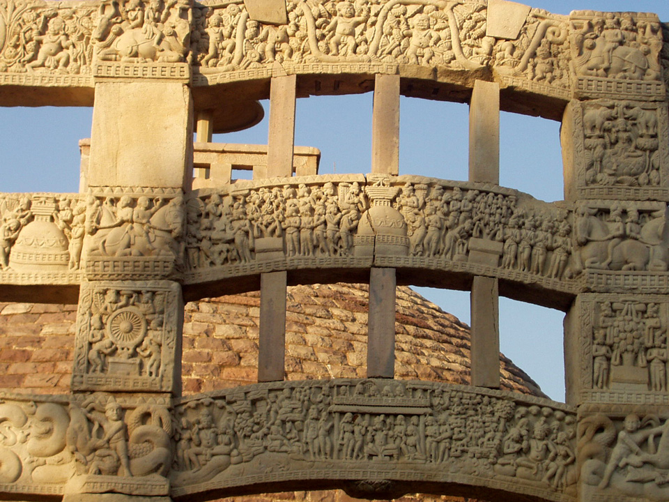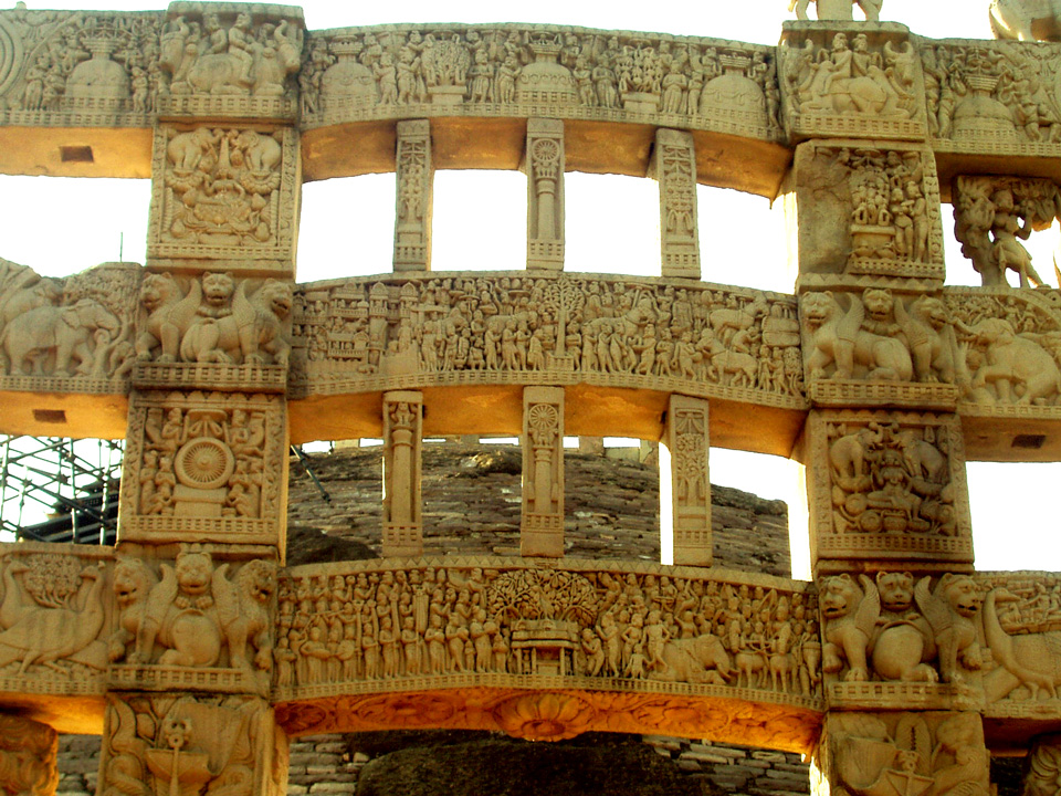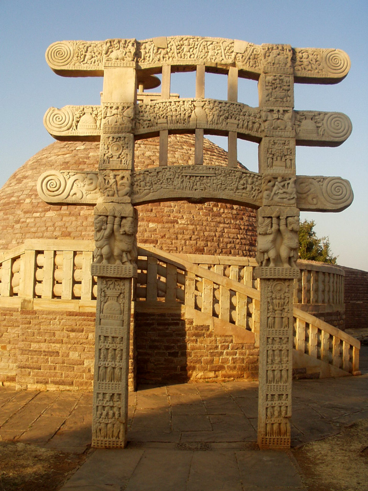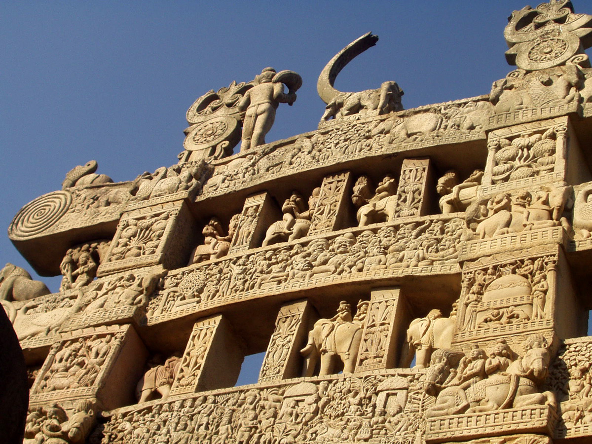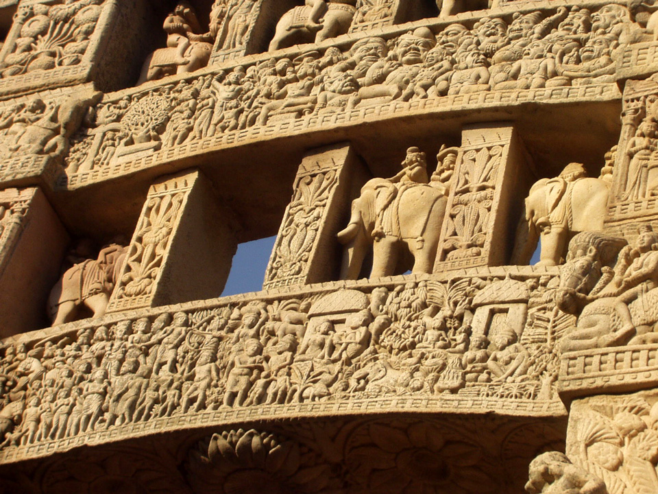Ciò che lo rendeva in ogni modo partecipe e soddisfatto, era la contentezza di potermi additare le figure di dvarapala, dei guardani divini effigiati nei basamenti dei pilastri del torana, forse memore dei dikpala del parshvanata temple di Khajuraho.