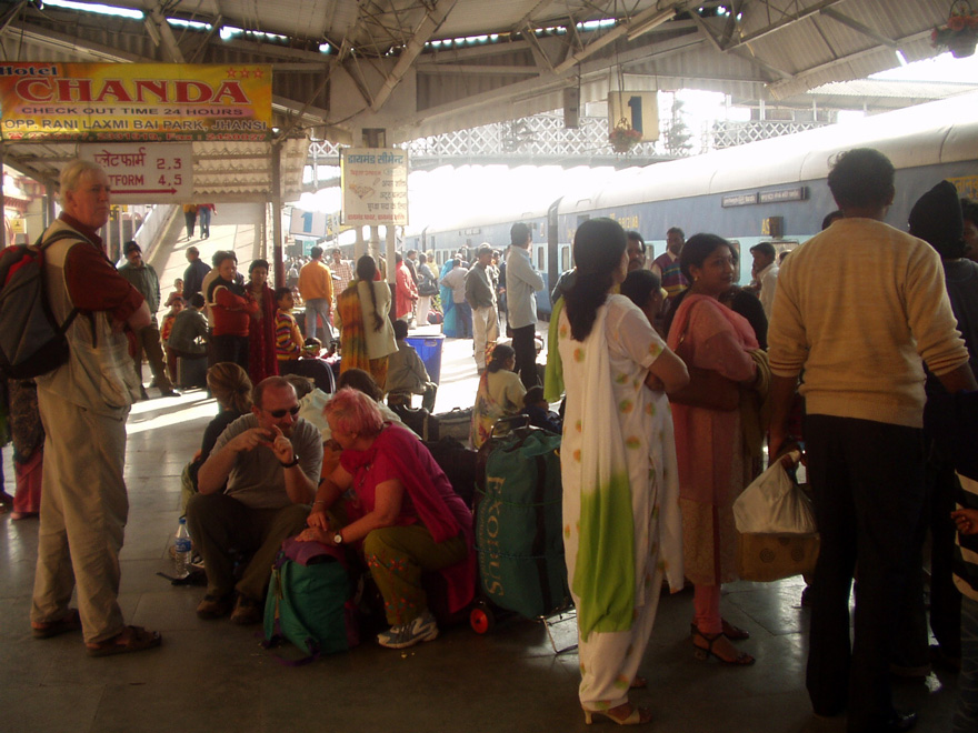 Ricordo oramai ben poco di che è accaduto il giorno seguente, il 30 dicembre, il giorno che da Jhanshi, io e Kallu abbiamo raggiunto in treno Bhopal. La memoria è gremita, tutta, dello splendido mattino e del primo pomeriggio di sole nella stazione di Jhansi, in attesa di un treno che di ora in ora seguitava ad incrementare il suo ritardo, mentre non scemava lo spettacolo estasiante di luce e di folla. La calda luce del sole invernale invernale si esaltava nei colori più accesi avvivandosi del fulgore amaranto degli abbigliamenti dei colies e dello sfarzo dei shari, variegandosi della moltitudine del viavai degli indiani di ogni casta o classe e dei turisti stranieri, di uomini e animali tra banchine e binari