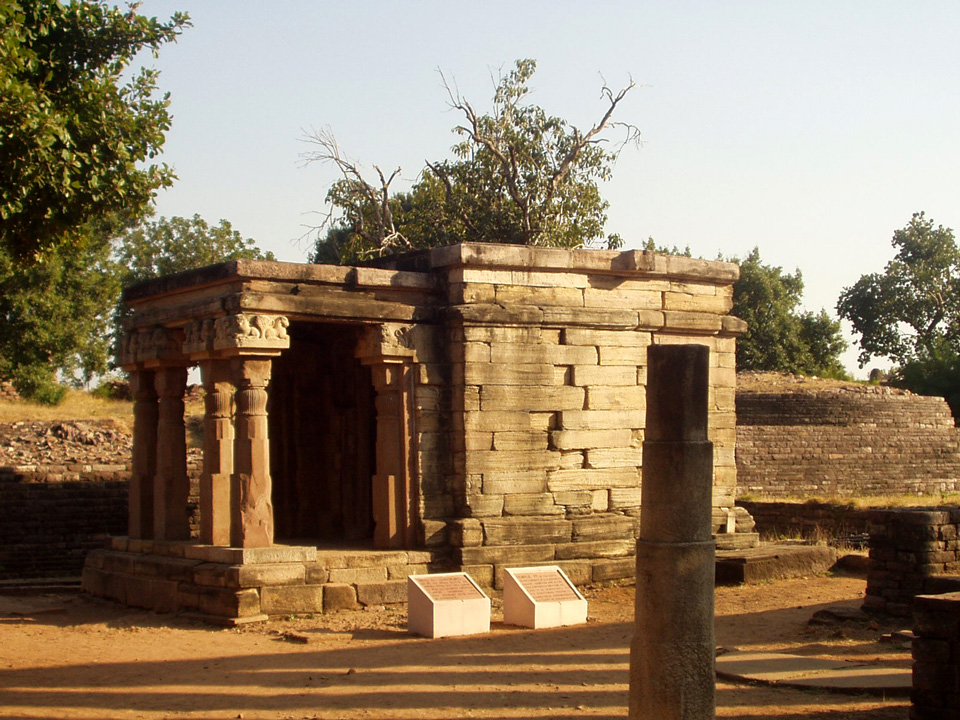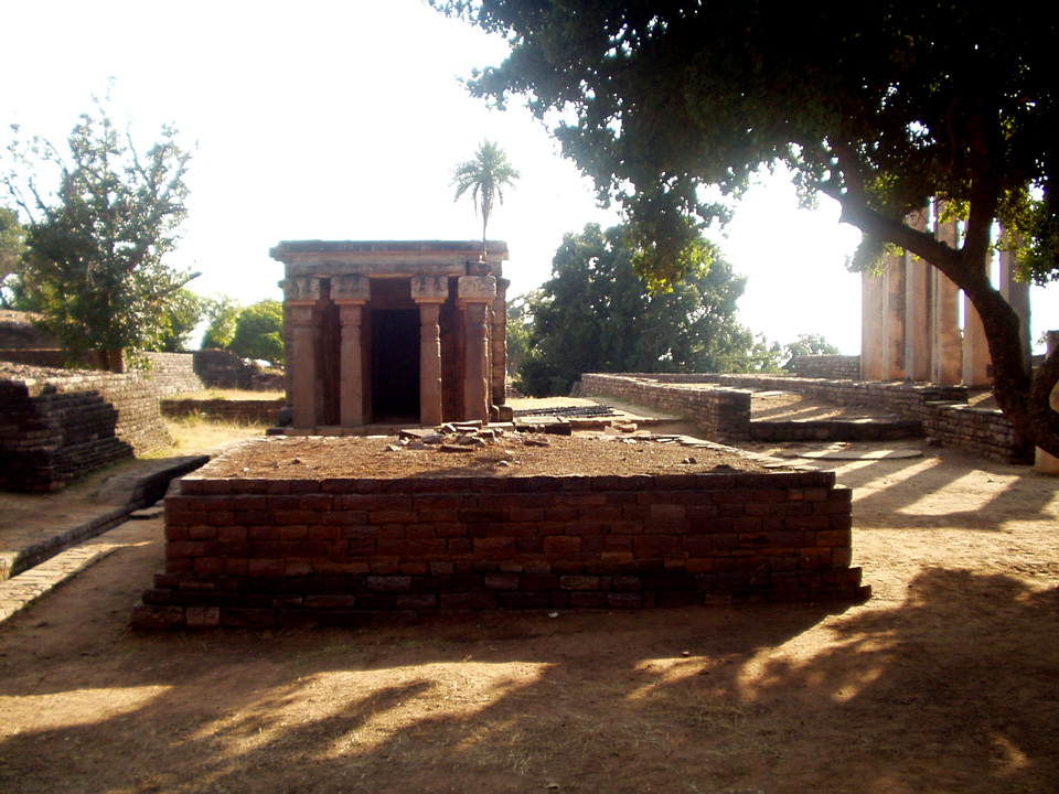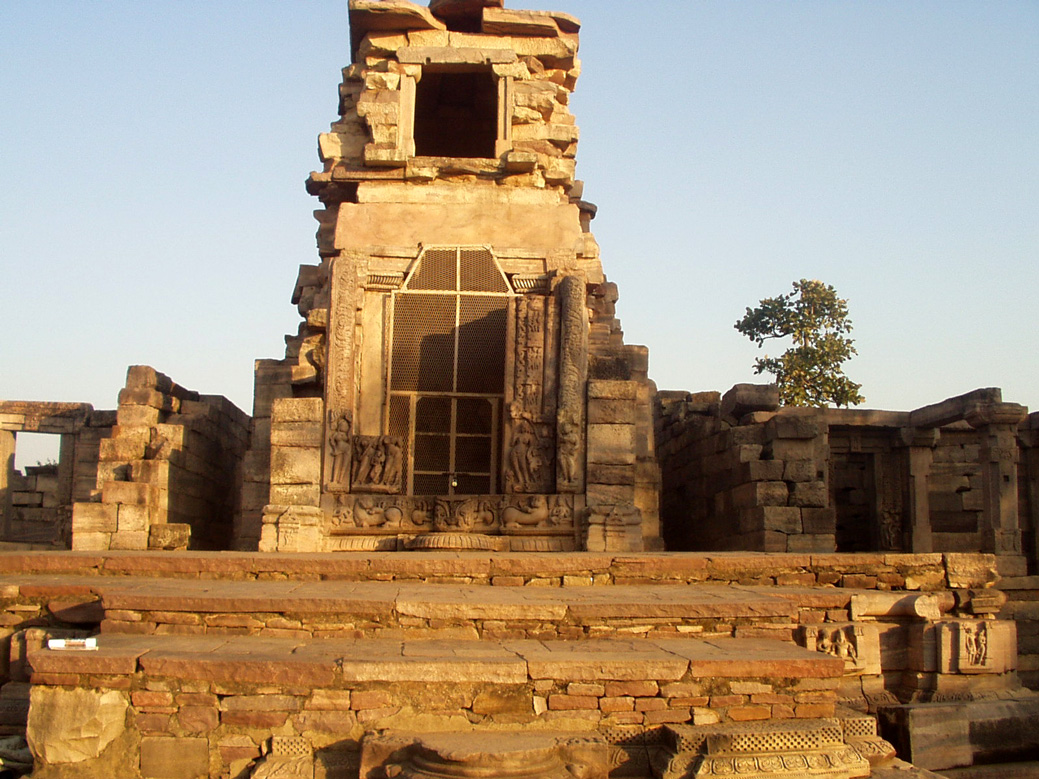 Nel cielo che si faceva di un azzurro sempre più intenso, seguitando a ruotare intorno allo stupa in senso orario, riconoscevo il profilarsi del tempio 17, ed a Kallu potevo indicare come ne costituissero il limitato sviluppo una cella e una sala di colonne, che nella sua Khajuraho poteva ritrovare negli sviluppi successivi della garbaghiha e della mandapa. Non indugiavamo più di tanto al torana meridionale, di cui ci interessavano soprattutto i gana, gli gnomi panciuti nei viluppi della loro fertilità vitale,