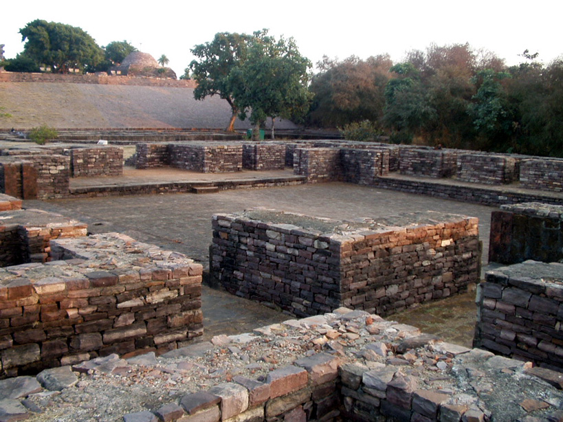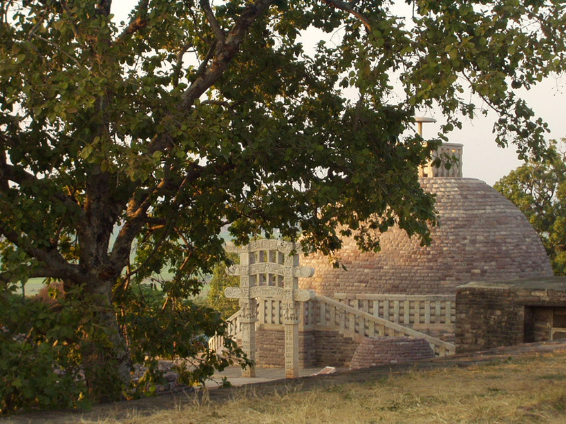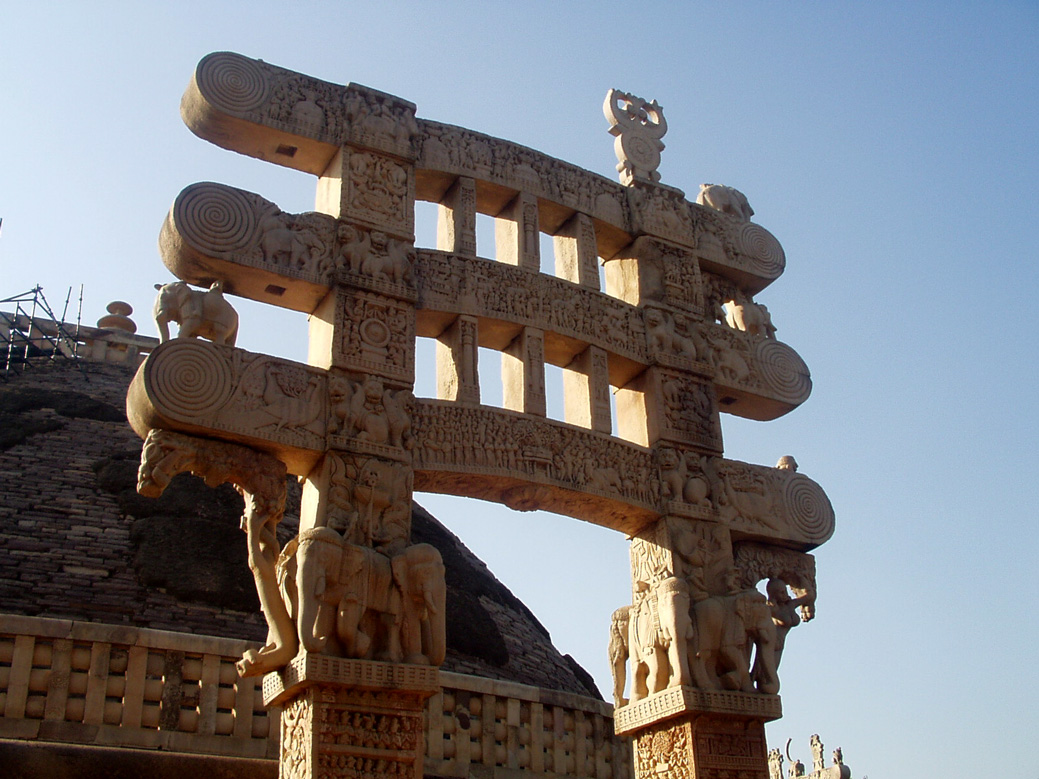 Attirava invece la mia attenzione un mio giovane connazionale, presso il torana, che mi diceva di essere un laureando in architettura, Fatepur Sikrhi, la immortale città ideale di Akbar, era l'oggetto precipuo dei suoi studi, ed era disceso sino a Sanchi per retrocedere iel tempo ai modi più originari di una modalità ricorrente dell' arte indiana, del massimo interesse, la trasposizione nella pietra di forme e tecniche lignee. Dal palo del sacrificio vedico deriva infatti l'asse centrale del tempio induista, dall' incrociarsi di frasche l'inflessione a ogiva delle mirabili Sikkara, dall' incrocio di canne e di pala arcuati la trabeazioe inflessa dei torana. Mi additava la recinzione in pietra del deambulatorio della pradakshina, la vedika, che era in tutto e per tutto l' equivalente di una staccionata" Vedi, anzichè alla statica dei corpi rigidi sottoposti a forze, hanno usato la tecnica dell'incastro, propria della lavorazione. Spiegavo la cosa a Kallu, alludendo alle forme dei recinti in cui forse tratteneva i suoi bufali, ricordandogli le osservazioni analoghe che avevo mosso al suo amico che ci faceva da guida in Orcha, alla vista della forma dei balconi in pietra del Palazzo di Jahangir. Ci