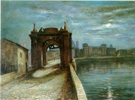 Il ponte di San Giorgio Notturno 1934-1935 olio su tela, cm 82x142 Mantova, collezione privata