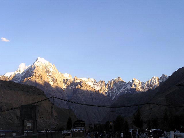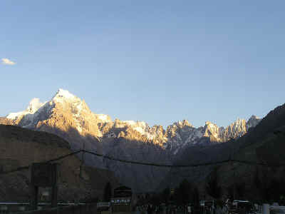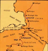 tra le cime che trapelano granitiche e il biancore abbagliante dei ghiacciai ad occidente di Gulmit, lo slargarsi all' altezza di Baltit, di Aliabad, della vista delle nevi che ammantano l'immenso Karapoci.