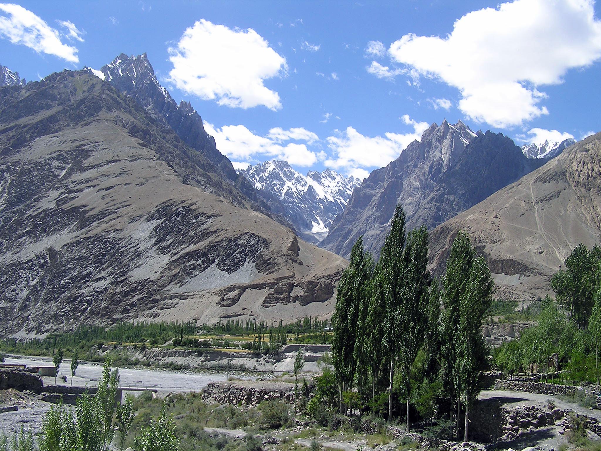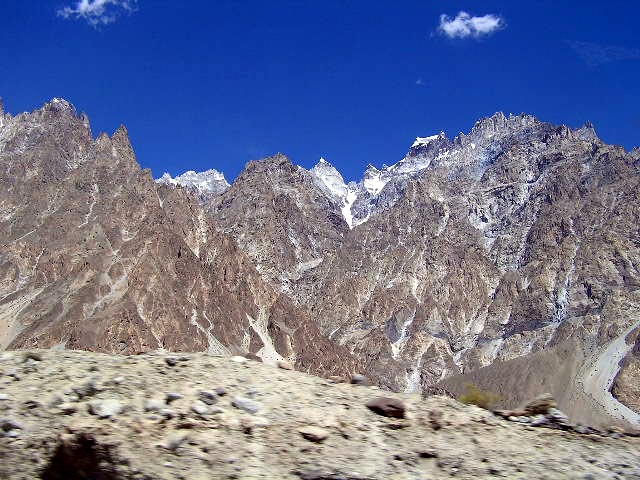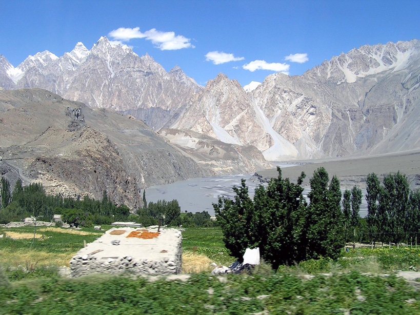 E seguito ancora per la Karakorum High Way, lungo il fondovalle in cui l'Hunza seguita il suo corso impetuoso, tra le creste dei picchi frastagliati di Passu,