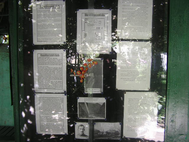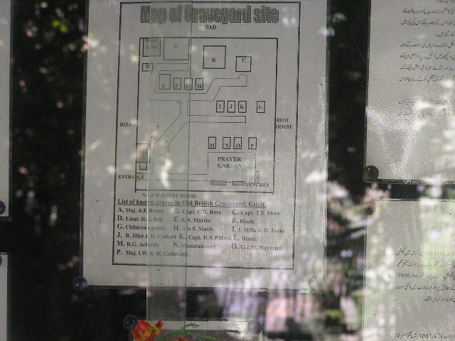 per rendere omaggio alla memoria di George Hayward , Una foto me ne mostra il bel volto barbuto, in cui si era assimilato del tutto a quello delle etnie pakistane, così come nell' abbigliamento onusto di rivoltelle e pugnali. Un'emozione fortissima, il senso della mia indegnità, mi commuove nella intima preghiera, al cospetto delle lapidi degli altri ardimentosi che vi sono sepolti o che vi hanno un tumulo alla memoria, tra la profusione del verde che ne sommerge le tombe: Francis Bruce, sergente, Claye Ross, Thomas Shaw Johnson, Harold Eldred, capitani, Gordon Bell luogotenente, Glen Ackerley, i montanari della spedizione Batura Muzhag, la moglie di Shifag Mash, "tragica vittima di un casuale incidente"...