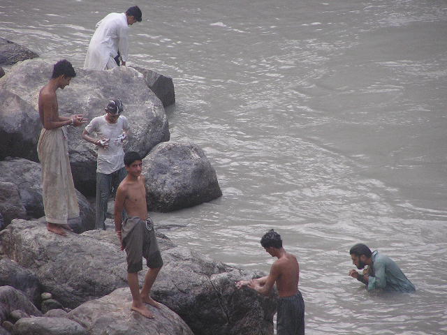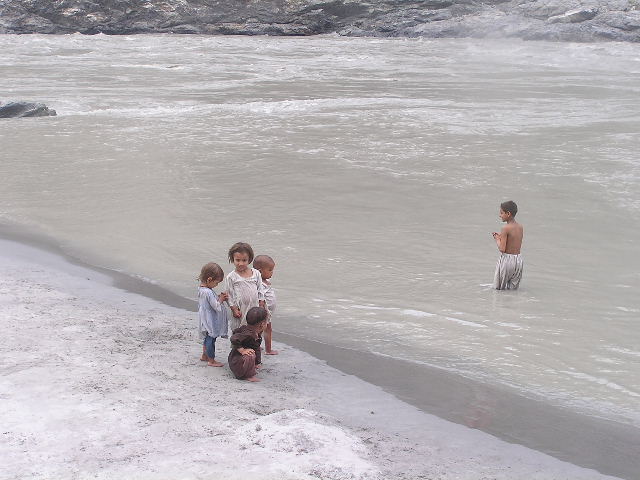 " E' il padre di sette fiumi", mi dirà uno dei meravigliosi ragazzi con i quali mi intrattengo ai piedi di Bashem, ove tra dei massi un'insenatura raffrena l'impeto dell' Indo e consente di bagnarsi.