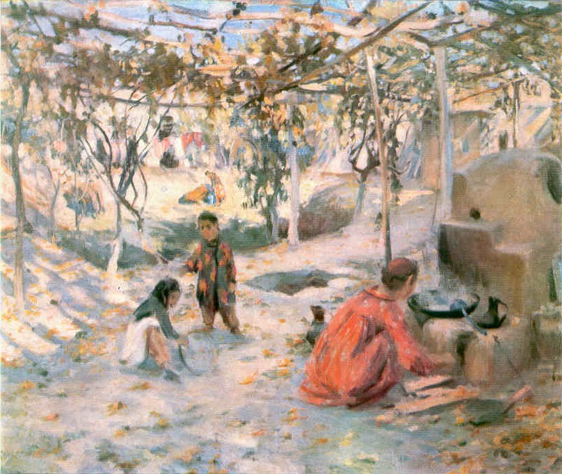 Nel Museo delle belle arti dell’Uzbekistan , in Tashkent , era limitato a tre sale lo spazio che la sezione archeologica sottraeva alla grande collezione di opere pittoriche, in cui Usto Momin, Tansiqboev, primeggiavano con Benkov,