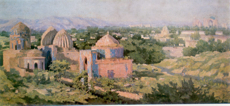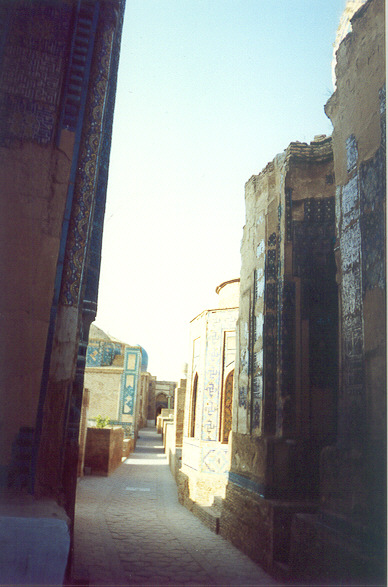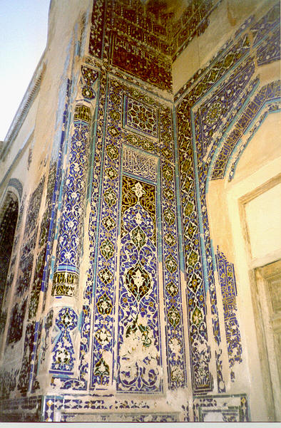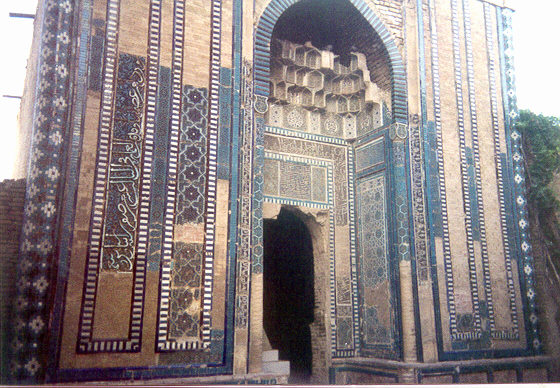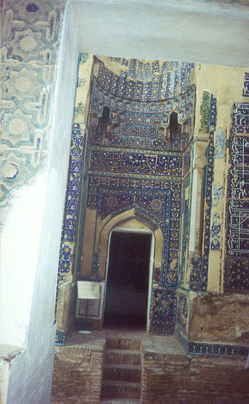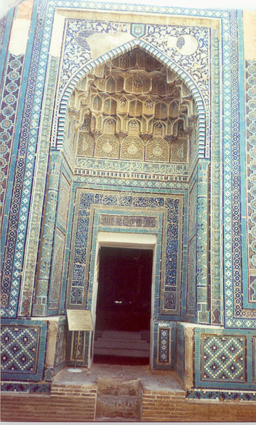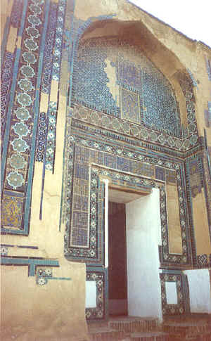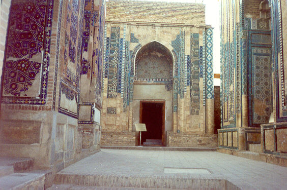 fronte sta il mausoleo di Khodja Ahmad, 1350, pre-timuride, ornamentato