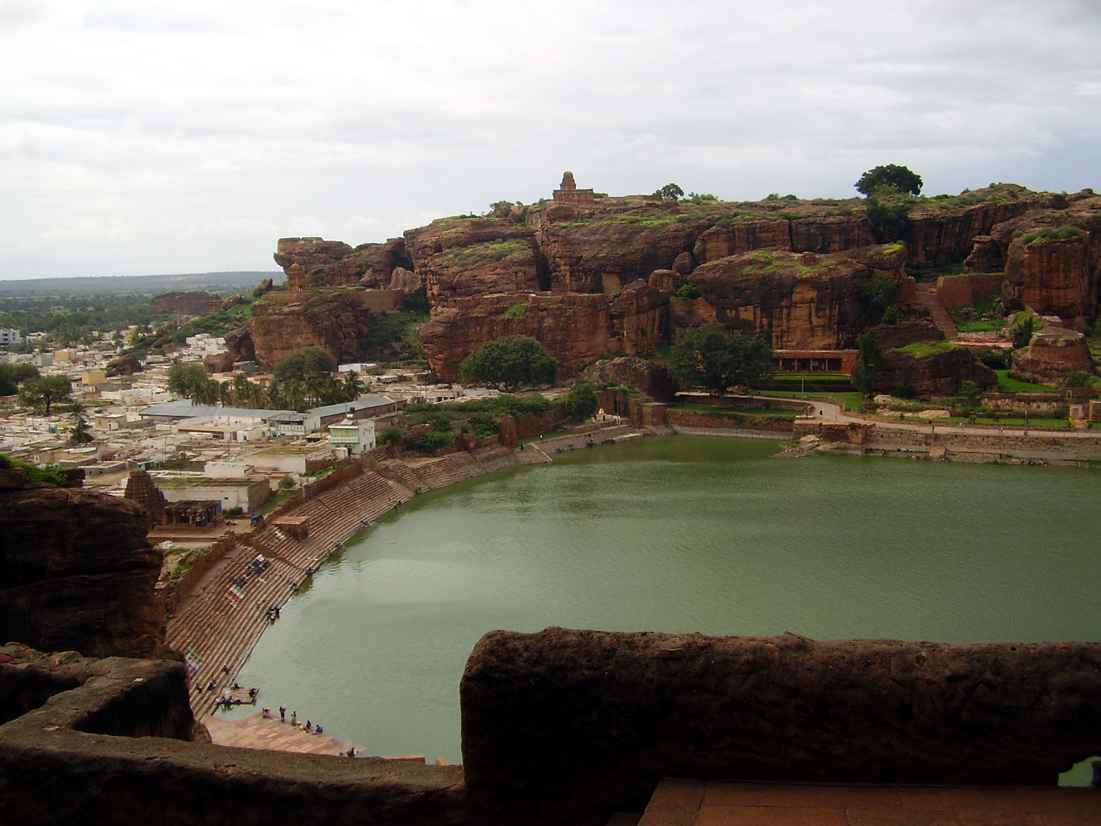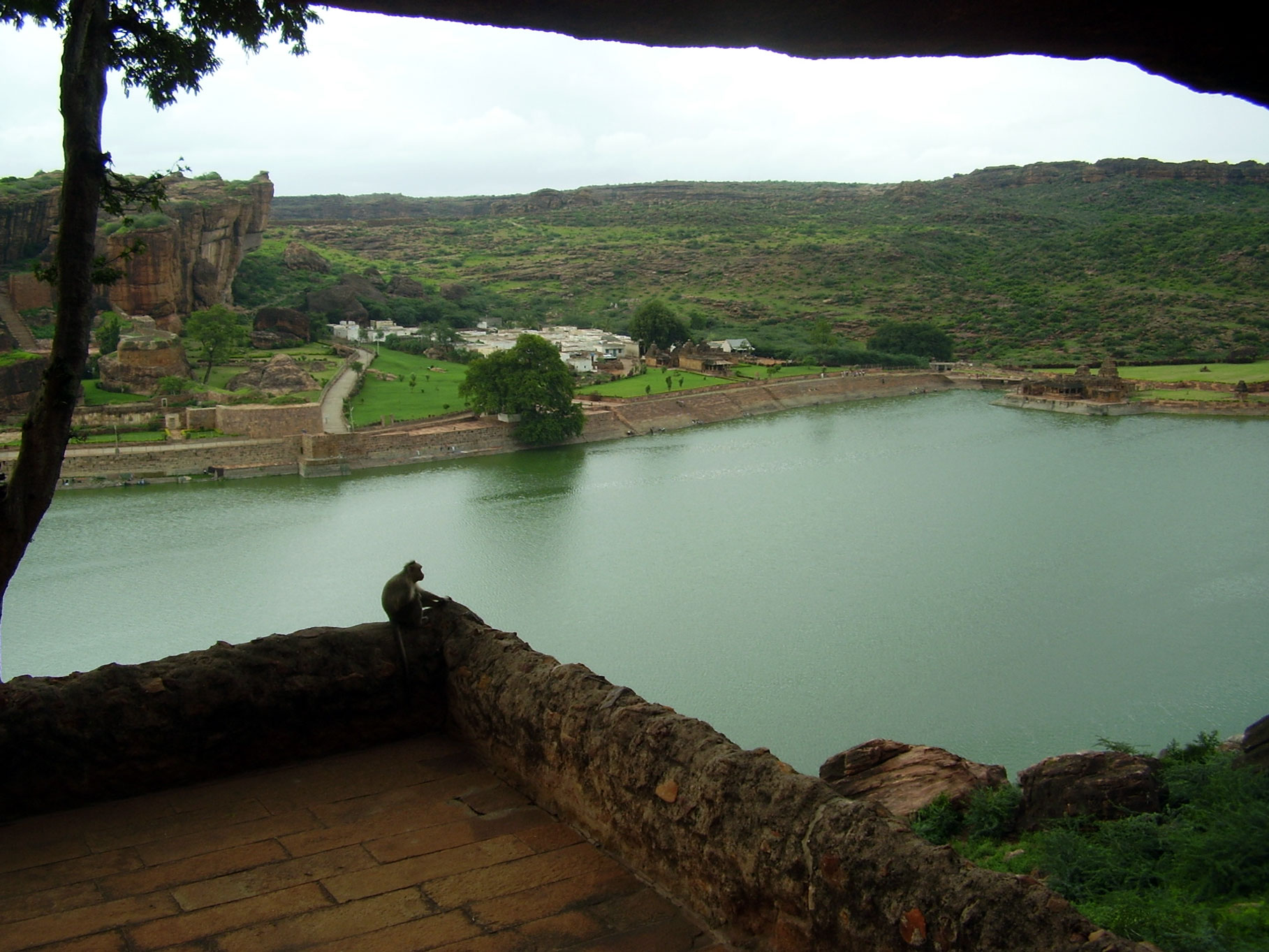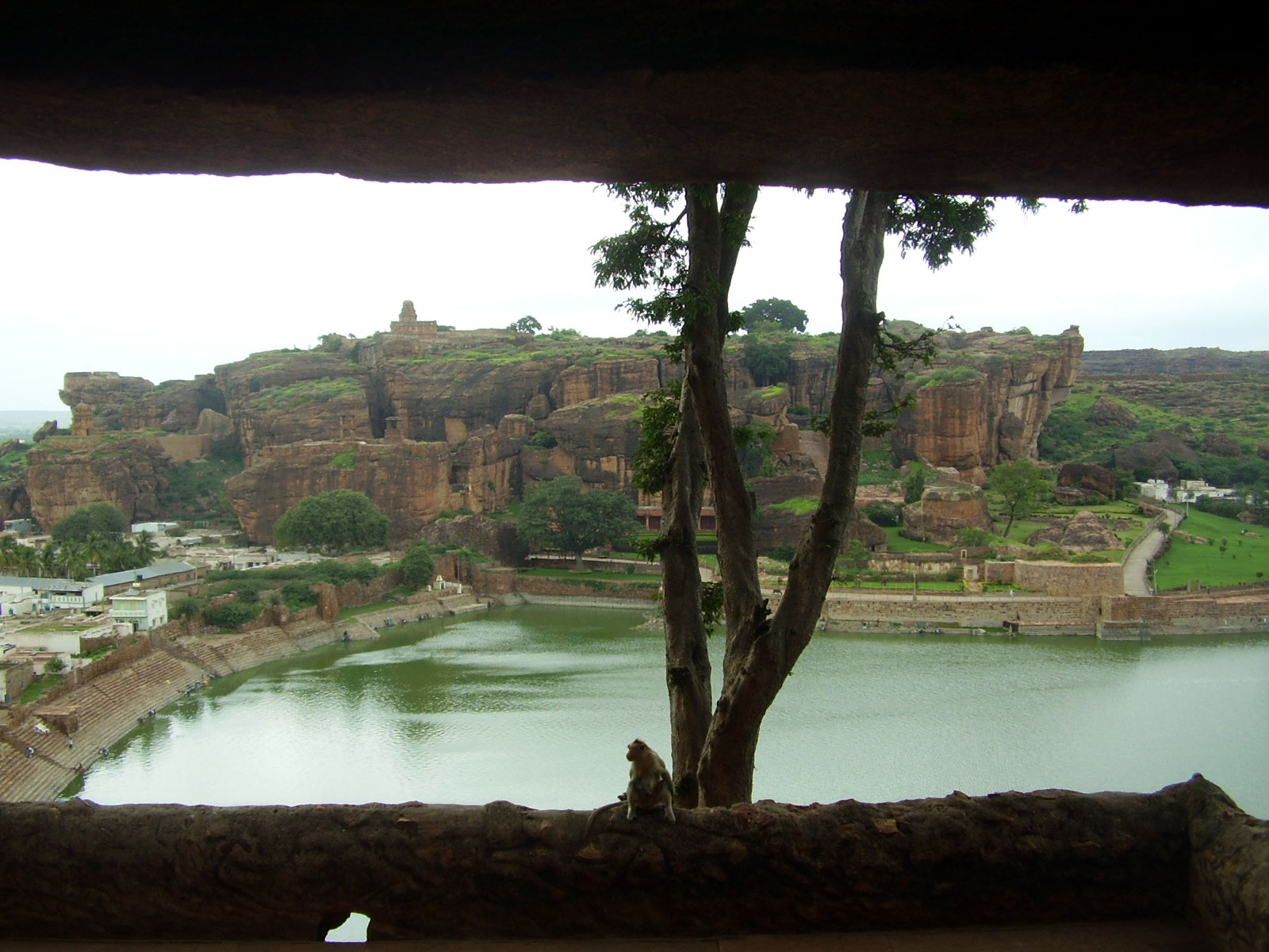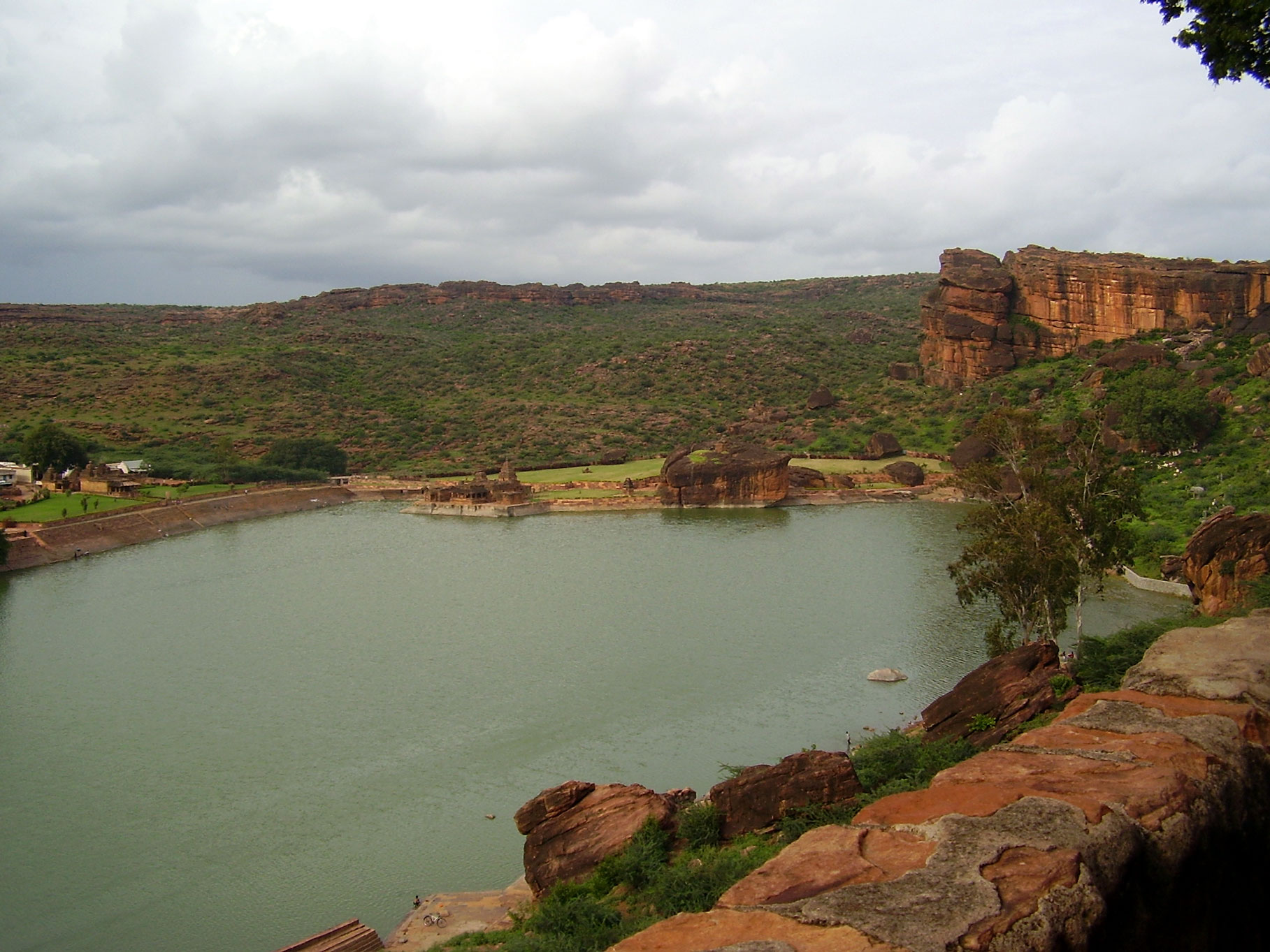 cielo nuvoloso oscura la bellezza del sito di Badami: è alveolato tra due