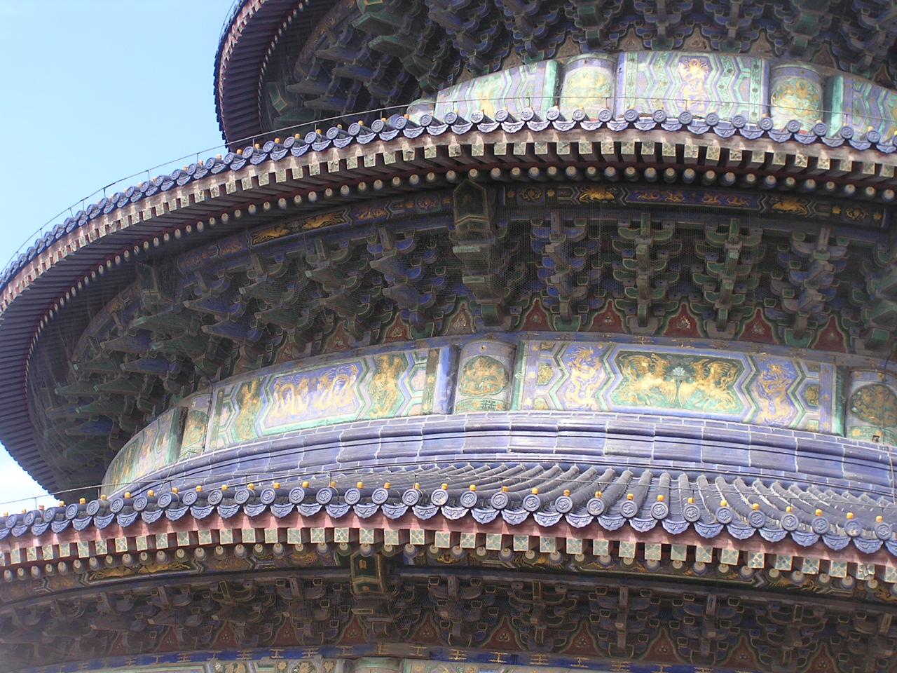 non essendomi dilungato, tra uno scroscio e l'altro di pioggia, che nella visita del complesso rituale del tempio del cielo, fascinato dall' incanto fungiforme delle svasature lamellari dei suoi tetti bluescenti, roride dell'evocazione rituale, tra cielo e terra, di un' escrescenza organica propiziatrice di messi,