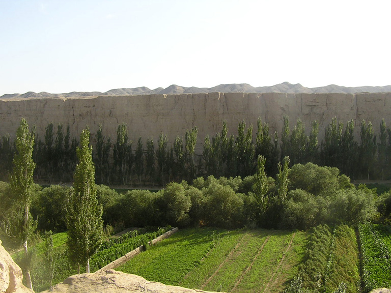 disseminato delle rovine di Jiaohé. Le falesie i cui bordi dirupavano nel