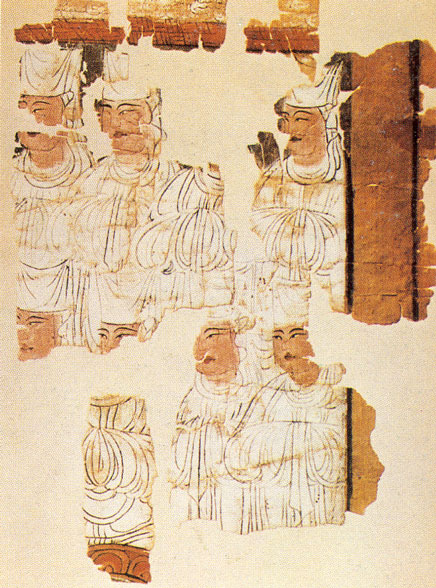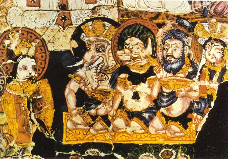 dipinto murale manicheistico, effigiante Mani, coronato, e i suoi seguaci, IX-X secolo